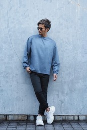 シンプルな無地配色にトレンドのシルエット、素材でデザインしたトレーナー。