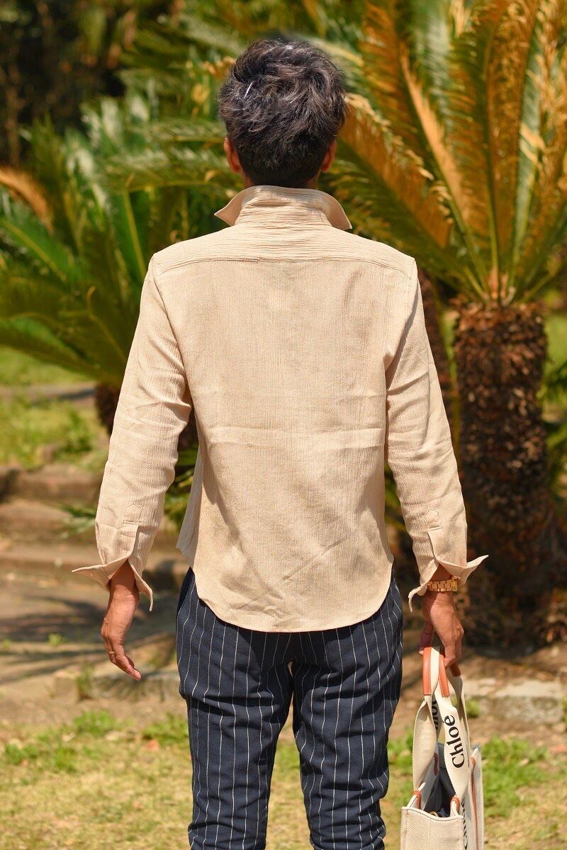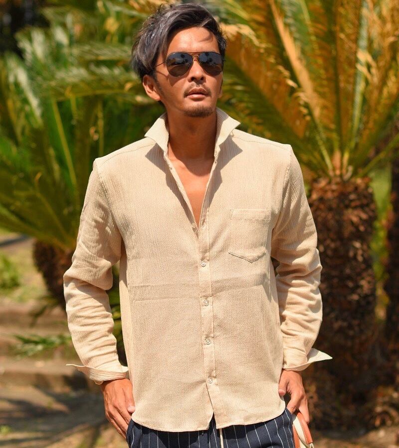 夏 高品質 ☆ リゾート ナーリー ホリゾンタルカラー シャツ 長袖 メンズ 通気性 薄手 涼しい サマー 海 大人 シンプル カジュアル キレイめ 清涼感 上品 海外 ファッション