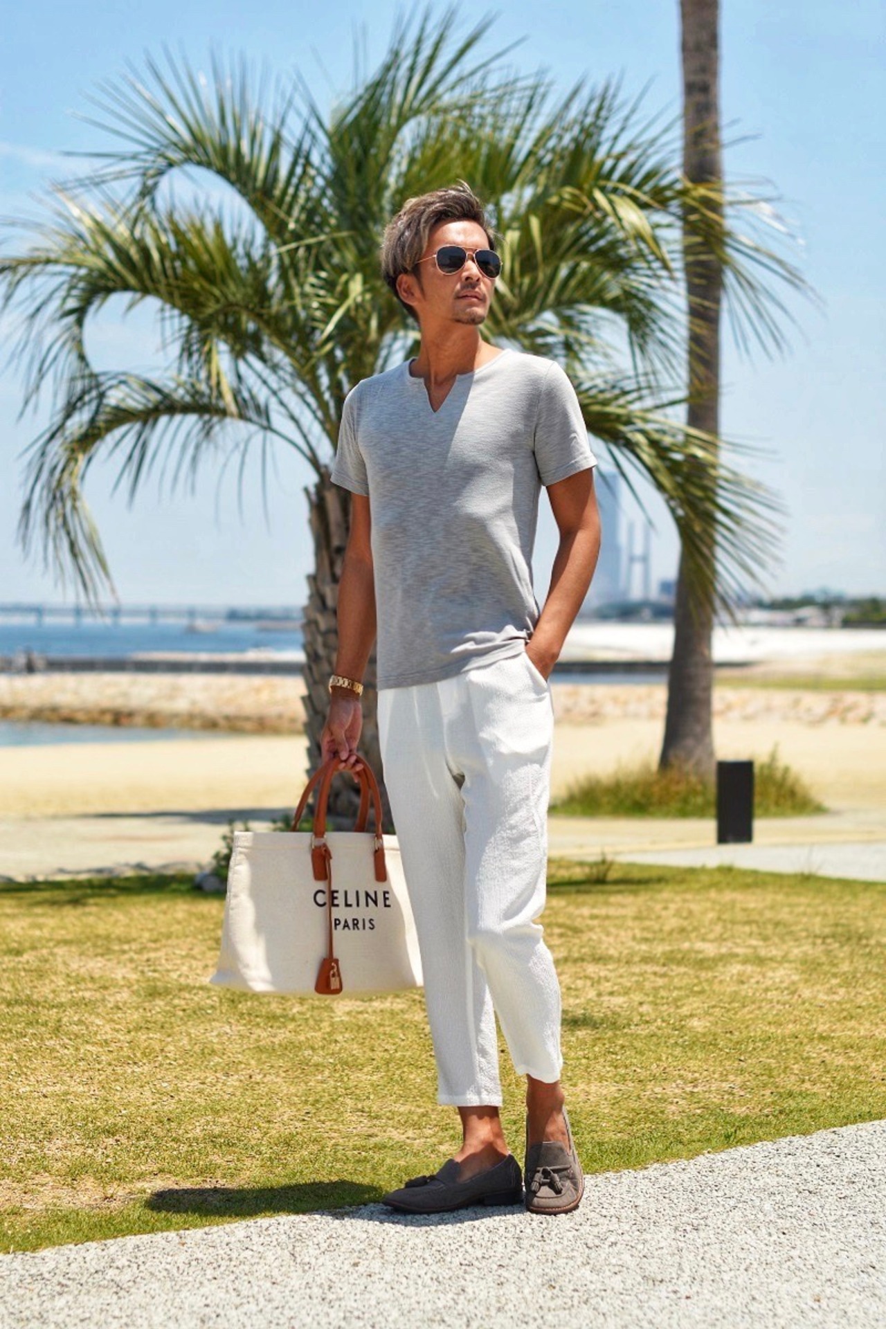夏 ☆ リゾート ナーリー スリム アンクル パンツ メンズ テーパード タック 薄手 涼しい ストレッチ 大人 キレイめ サーフ 海外 ファッション