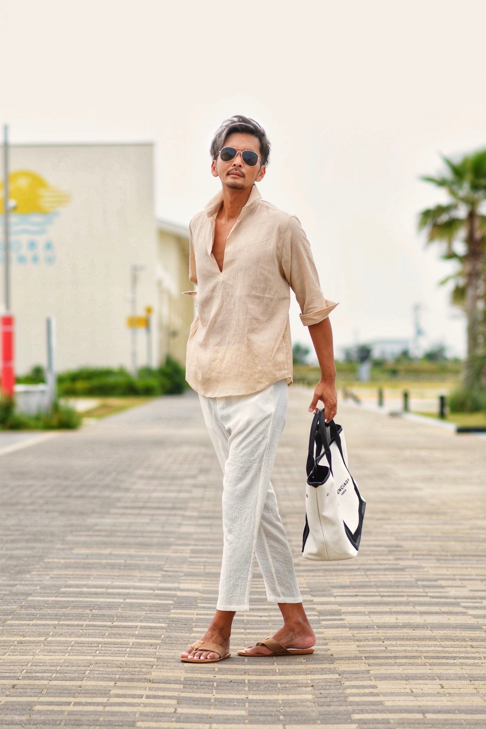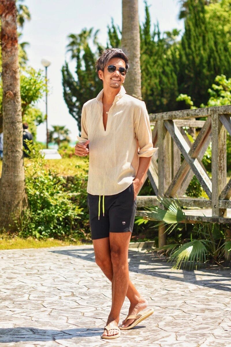 春夏大人リゾートスタイルにがっつりハマるリゾートナーリーカプリシャツ。