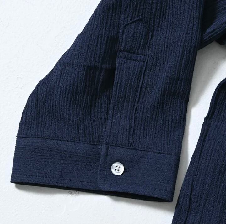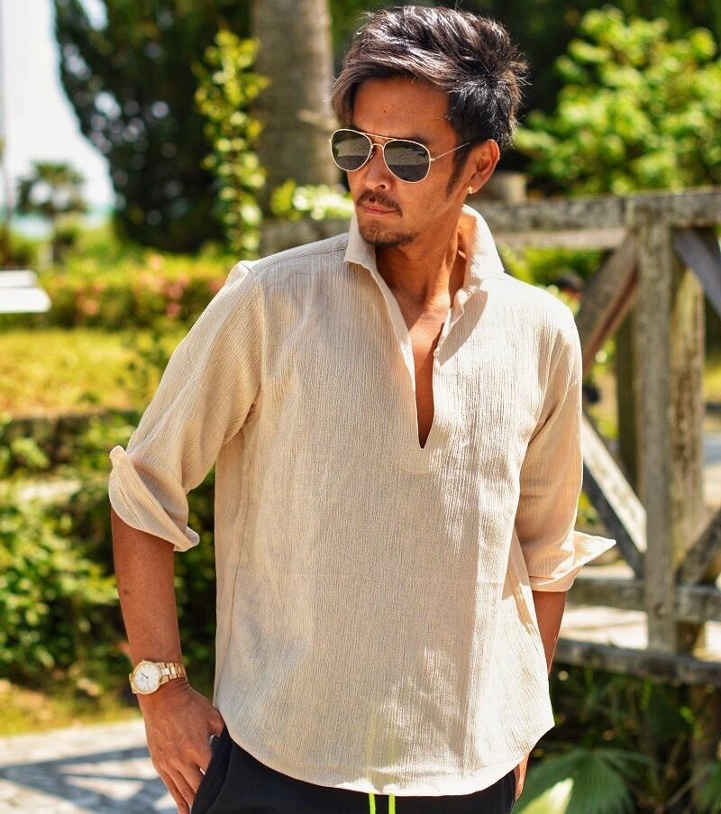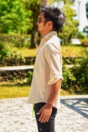 襟のあるシャツなので使い勝手がよく、適度なリラックス感でこなれ感のアイテムに仕上がりました。