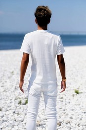 左胸のロゴを入れ、サーフカジュアルな雰囲気に仕上げました。