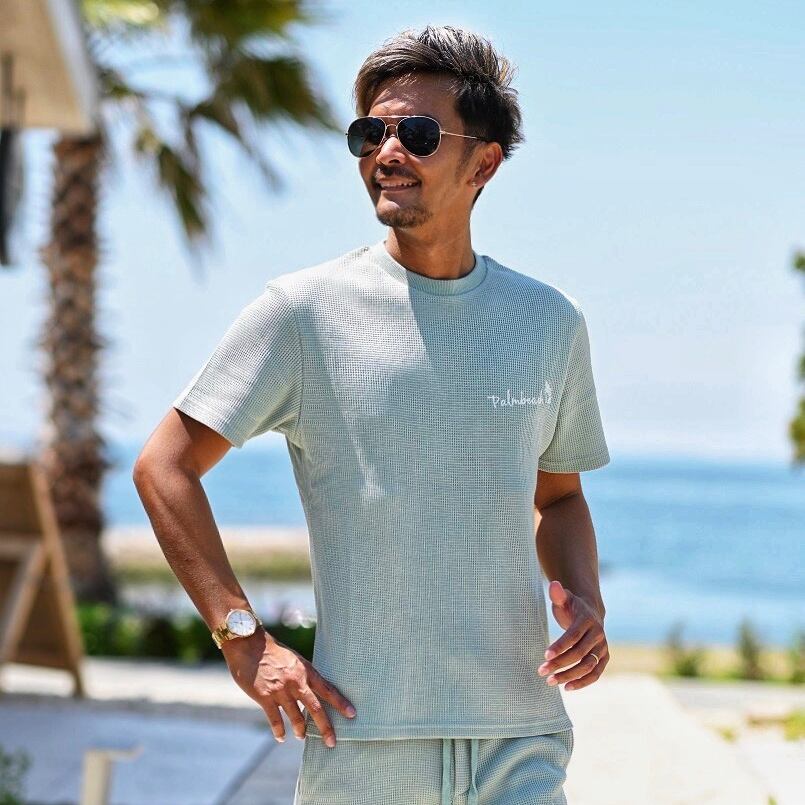 [ Palm beach 刺繍 ピグメント ワッフル Tシャツ ]