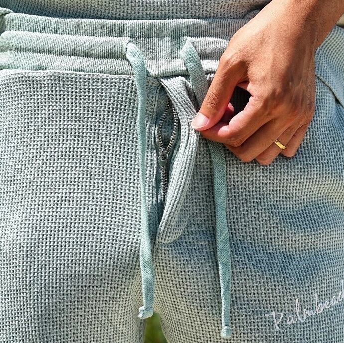 [ Palm beach 刺繍 ピグメント ワッフル スリム アンクル パンツ ]
