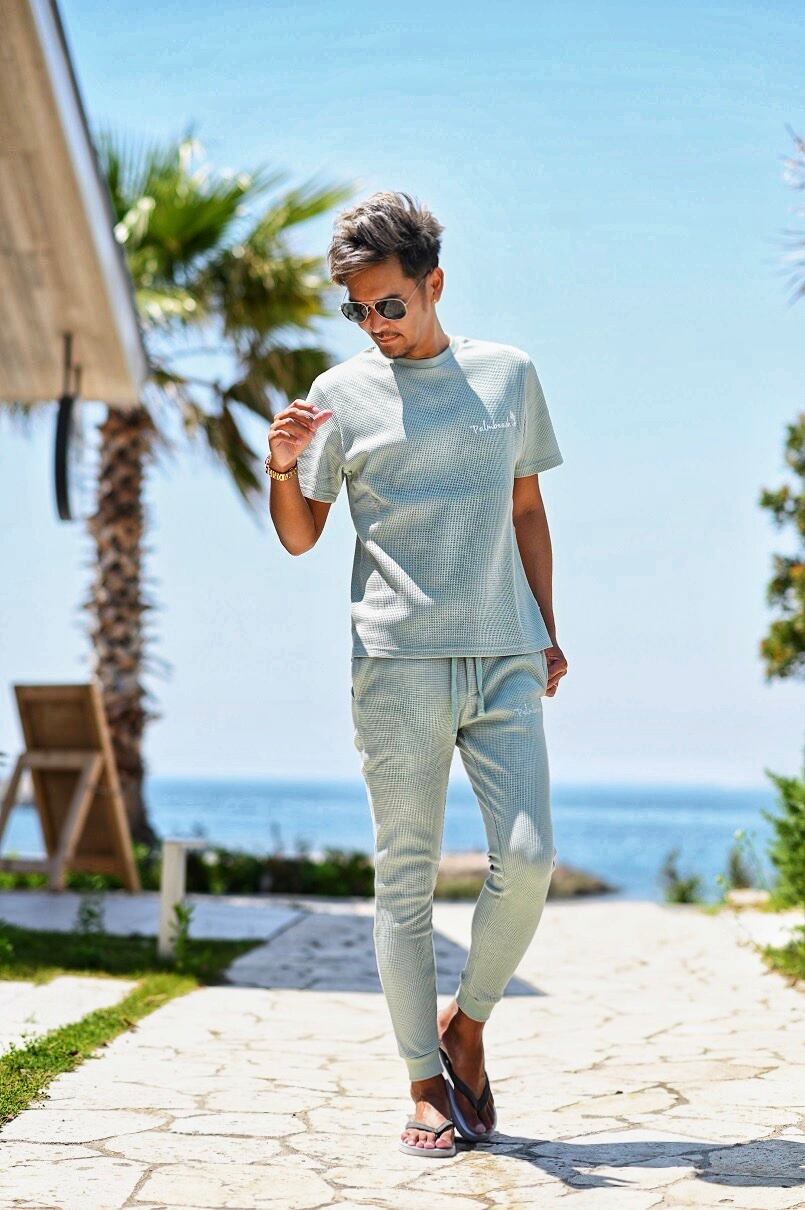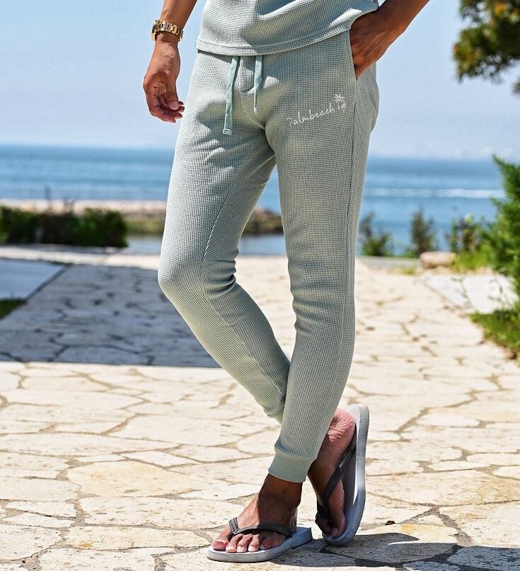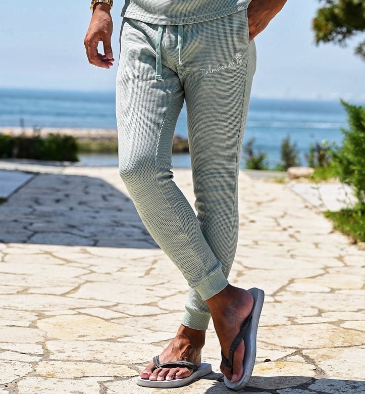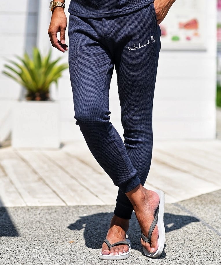 夏 ☆ Palm beach 刺繍 ピグメント ワッフル スリム アンクル パンツ メンズ スウェット イージー サーフ SURF ヤシの木 リゾート 海 ビーチ 西海岸 ファッション
