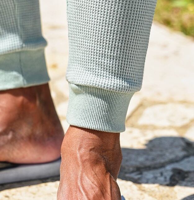 ヴィンテージのような色落ち感を出す、ピグメントと呼ばれる加工を施したワッフル素材のイージースリムパンツ。