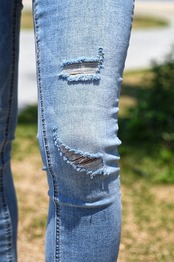 [ ダメージ スキニー デニム カットオフ アンクル パンツ ]
