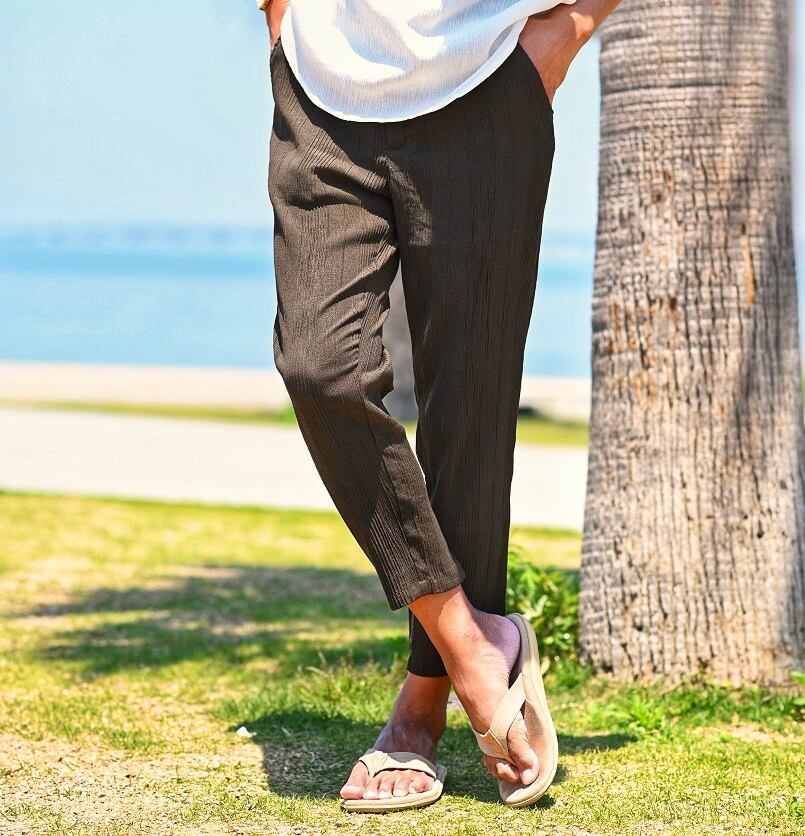 夏 ☆ リゾート リラクシング パンツ メンズ テーパード タック イージー 薄手 涼しい ストレッチ 大人 キレイめ サーフ 海外 ファッション