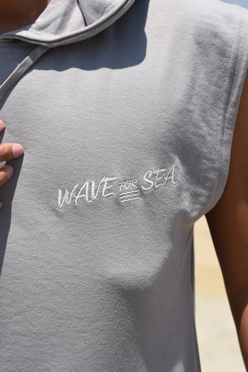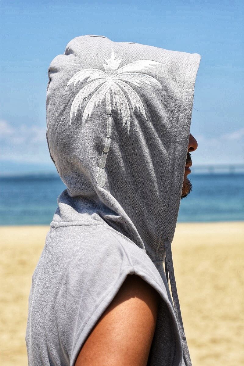 [ WAVE SEA PALM TREE 刺繍 スウェット ノースリーブ パーカー ]