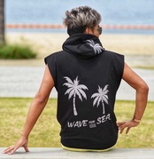 [ WAVE SEA PALM TREE 刺繍 スウェット ノースリーブ パーカー ]
