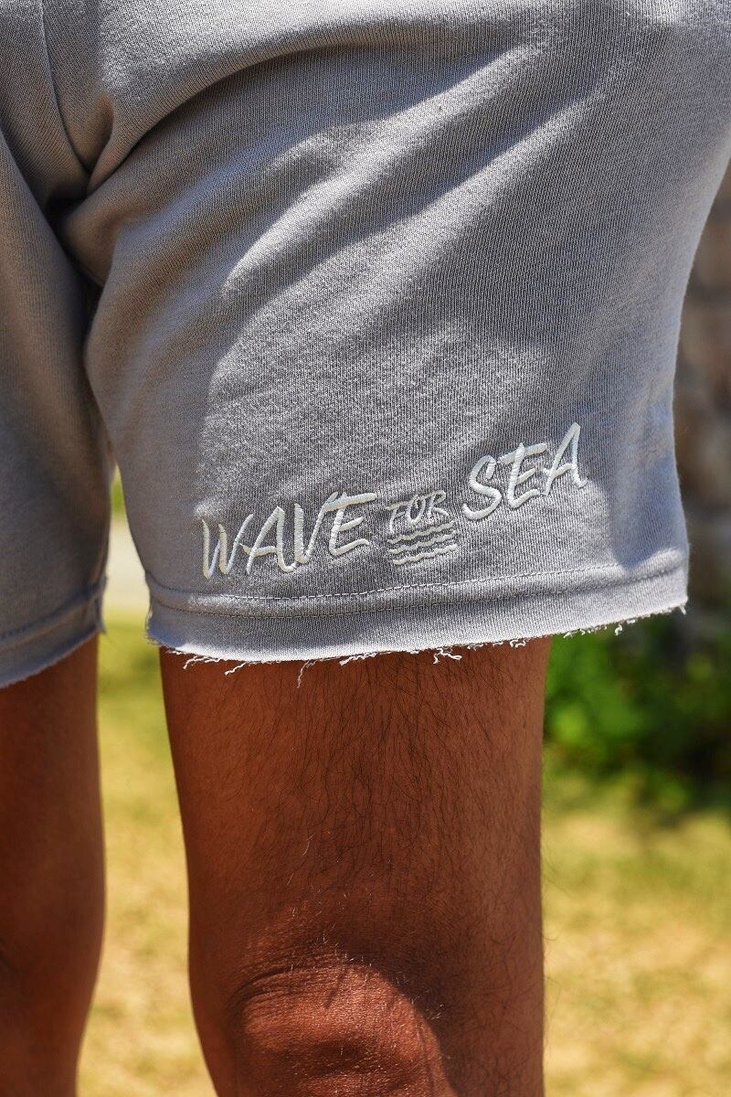 [ WAVE SEA 刺繍 ピグメント スウェット カットオフ ショーツ ]