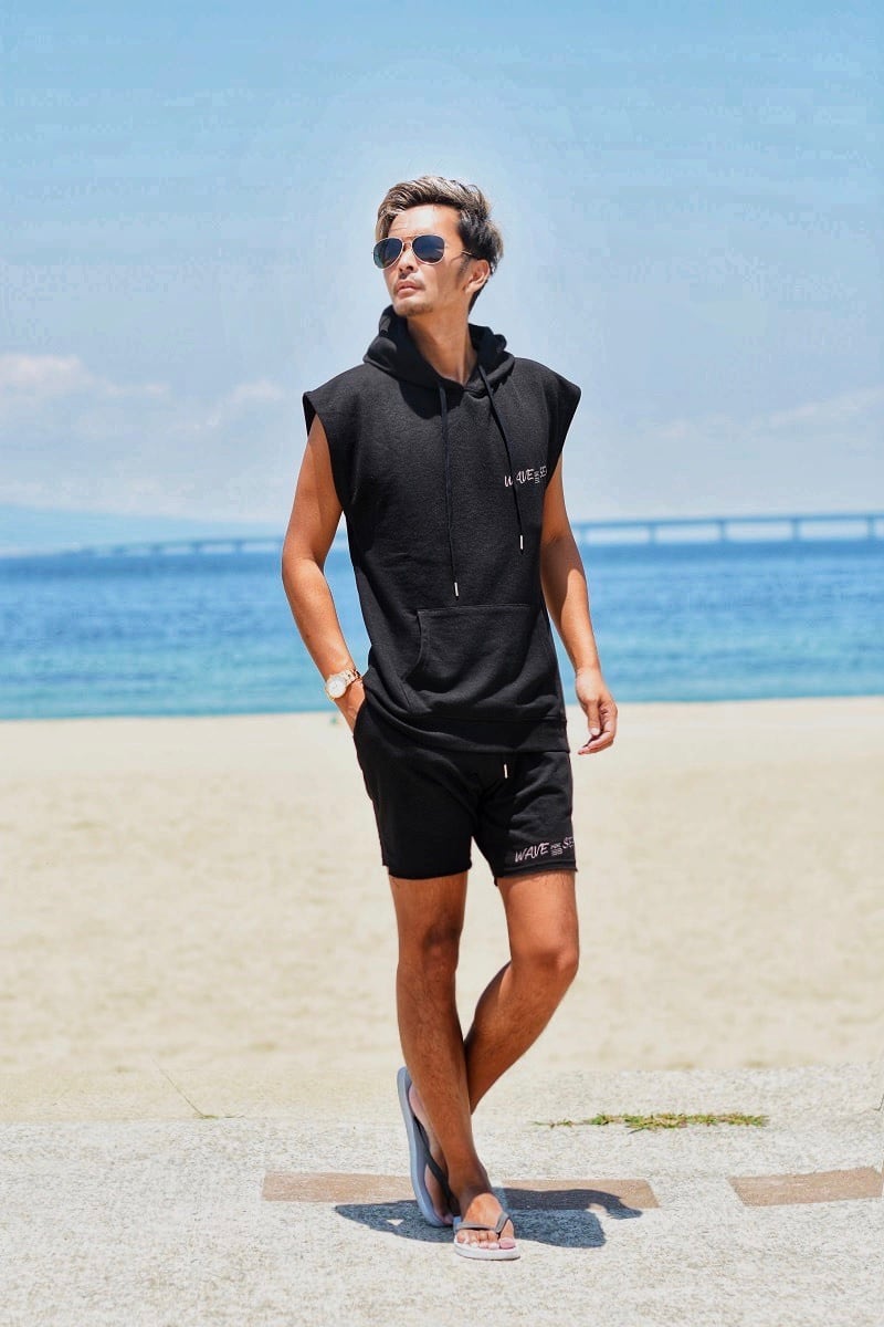 夏 ☆ WAVE SEA 刺繍 ピグメント スウェット カットオフ ショーツ メンズ サーフ ショートパンツ 海 リゾート ルームウェア カリフォルニア 海外 ファッション