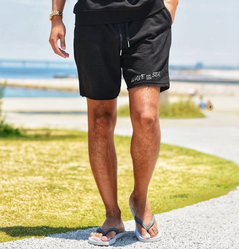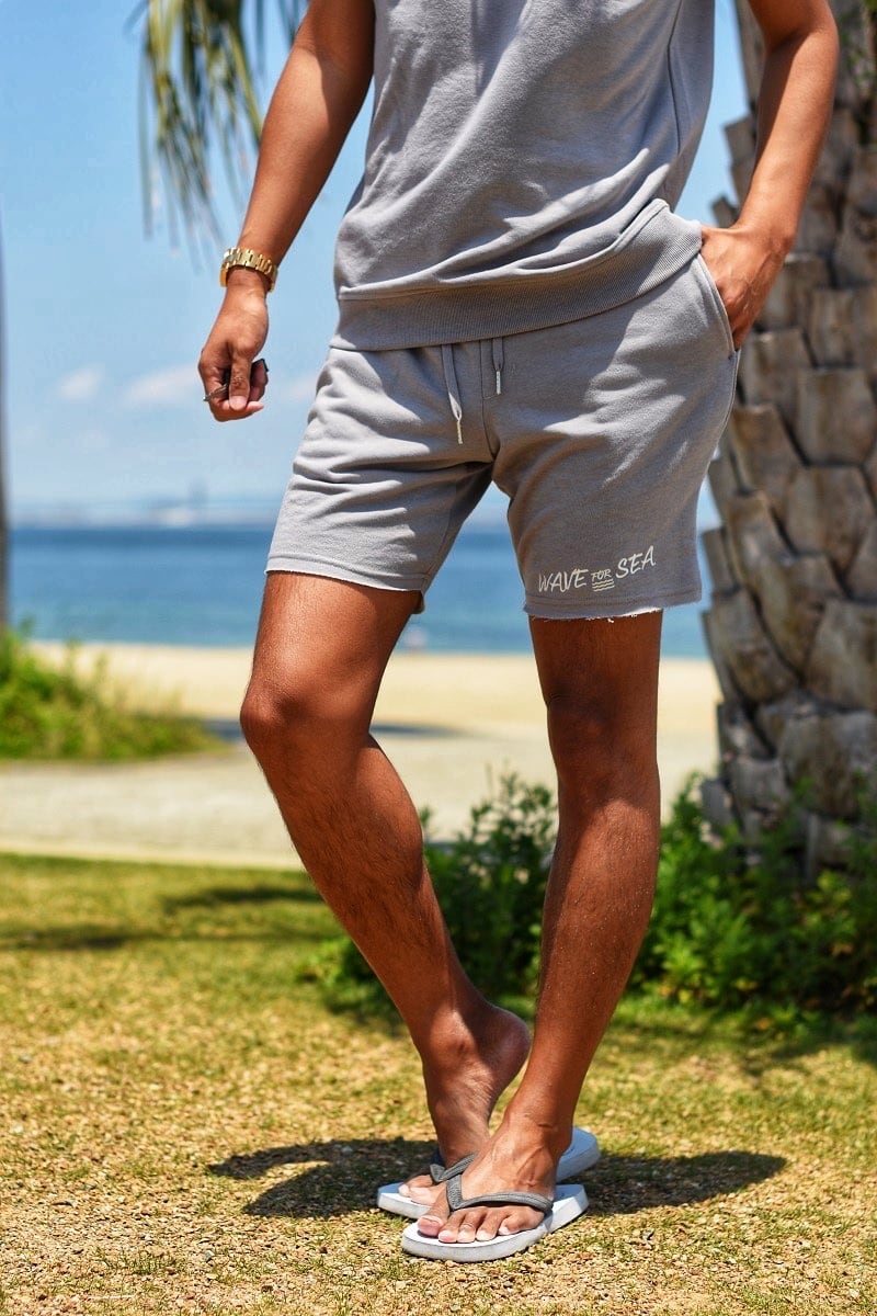 [ WAVE SEA 刺繍 ピグメント スウェット カットオフ ショーツ ]