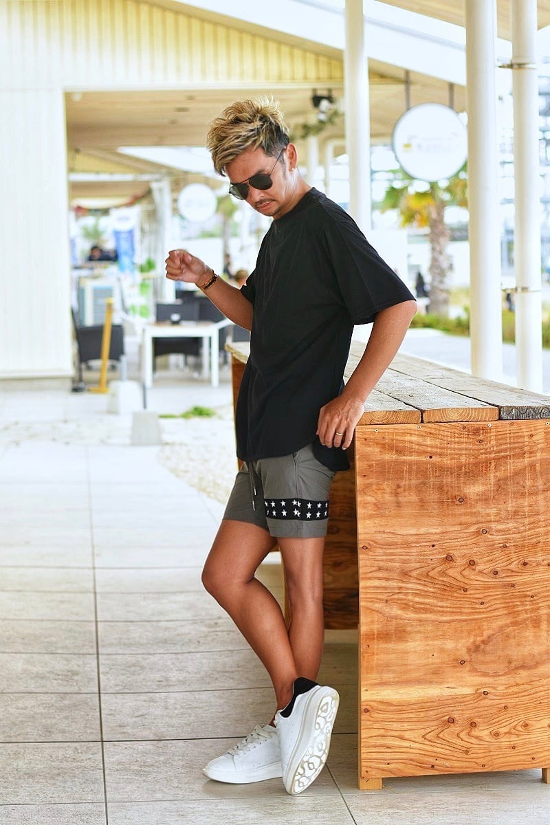 夏 ☆ スター ライン ナイロン ショーツ メンズ 星柄 水着 水陸両用 サーフ ショートパンツ メッシュ 海 リゾート プール 短パン 膝上 ひざ上 ルームウェア 海外 ファッション