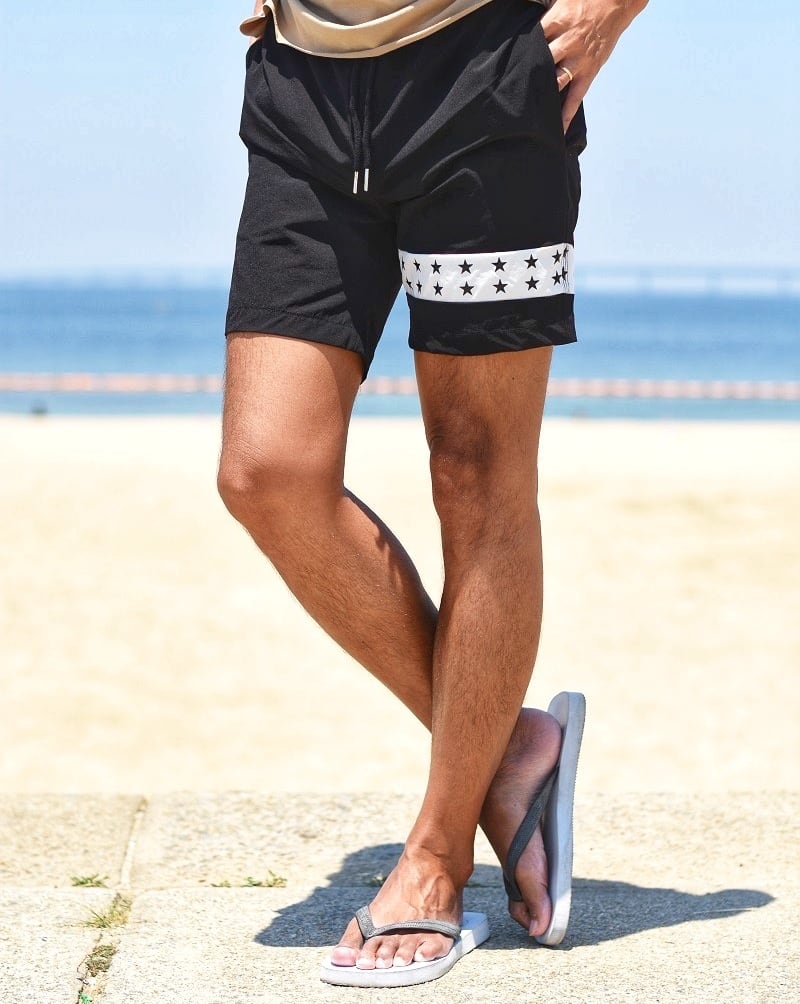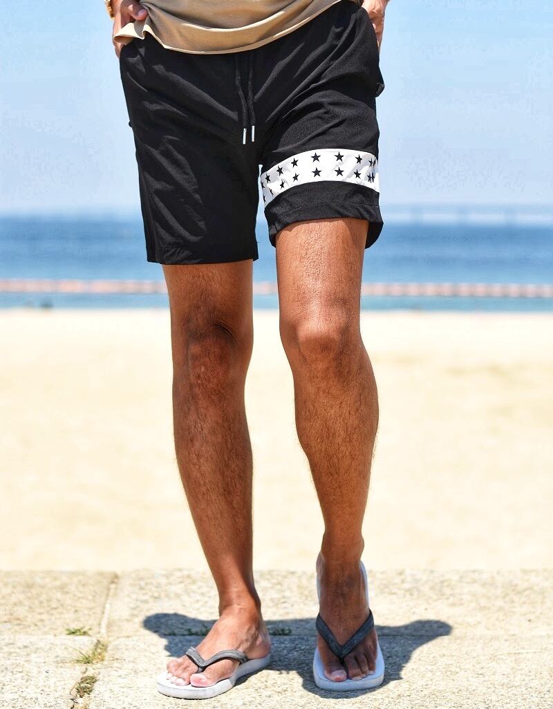 夏 ☆ スター ライン ナイロン ショーツ メンズ 星柄 水着 水陸両用 サーフ ショートパンツ メッシュ 海 リゾート プール 短パン 膝上 ひざ上 ルームウェア 海外 ファッション