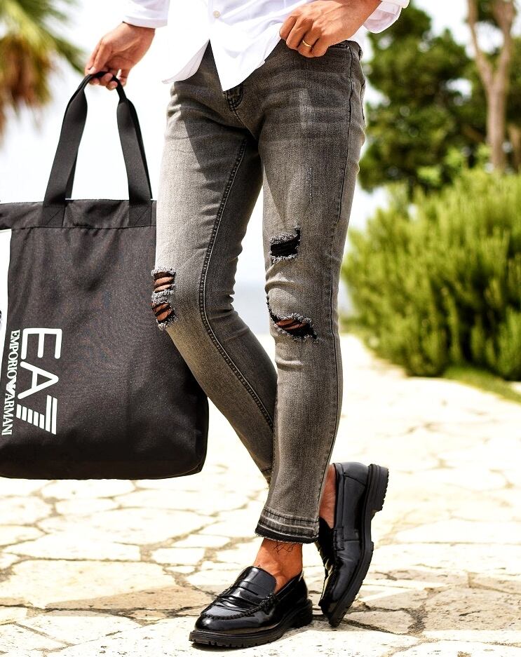 シンプルなダメージ加工と自然な色落ちがこなれ感のある仕上がりに。
