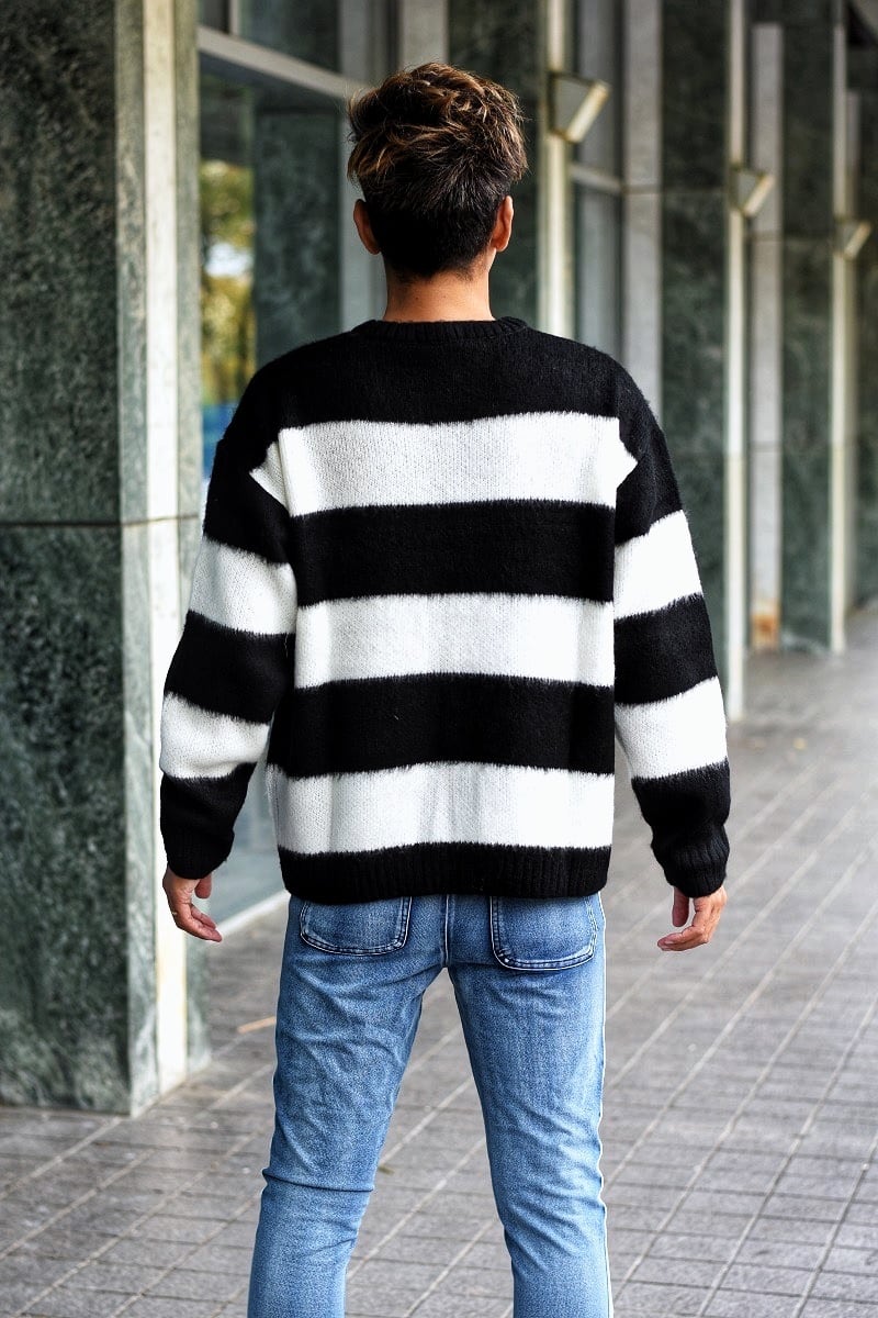 2025 冬 新作 ☆ モヘア ボーダー リラクシング ニット メンズ レディース セーター ビッグ ゆったり オーバーサイズ スウェット 上品 無地 大人 暖かい カジュアル 海外 ファッション