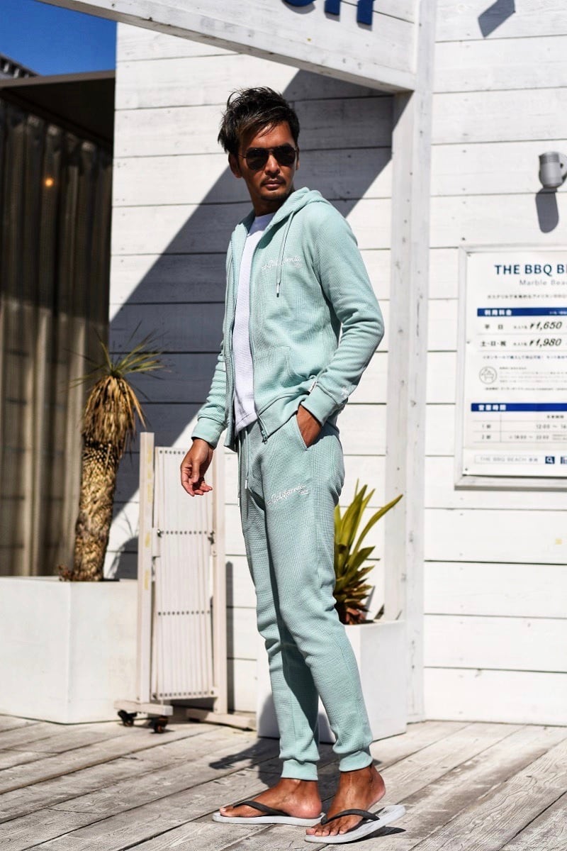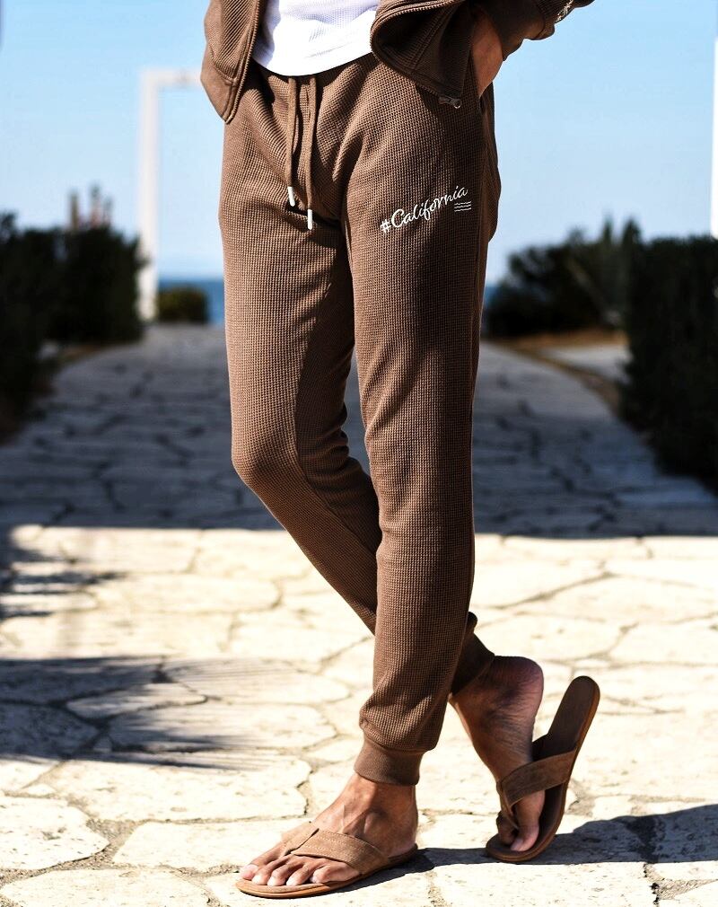 2024 春 新作 ☆ # California 刺繍 ピグメント ワッフル ジョガー パンツ メンズ スウェット カリフォルニア イージー サーフ SURF ヤシの木 波 リゾート 海 ビーチ 西海岸 ファッション