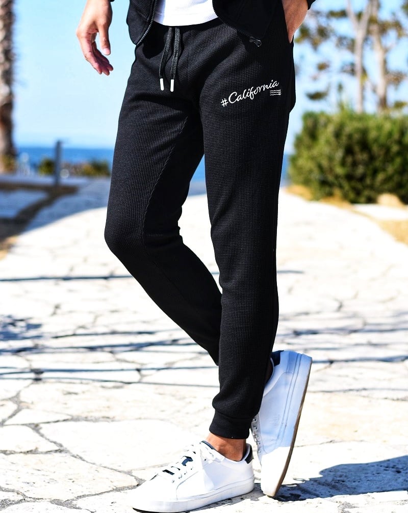 2024 春 新作 ☆ # California 刺繍 ピグメント ワッフル ジョガー パンツ メンズ スウェット カリフォルニア イージー サーフ SURF ヤシの木 波 リゾート 海 ビーチ 西海岸 ファッション