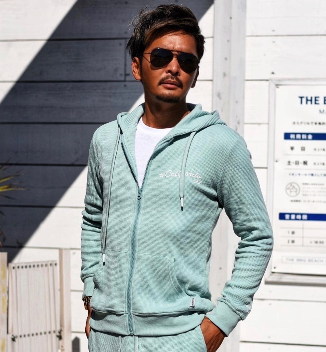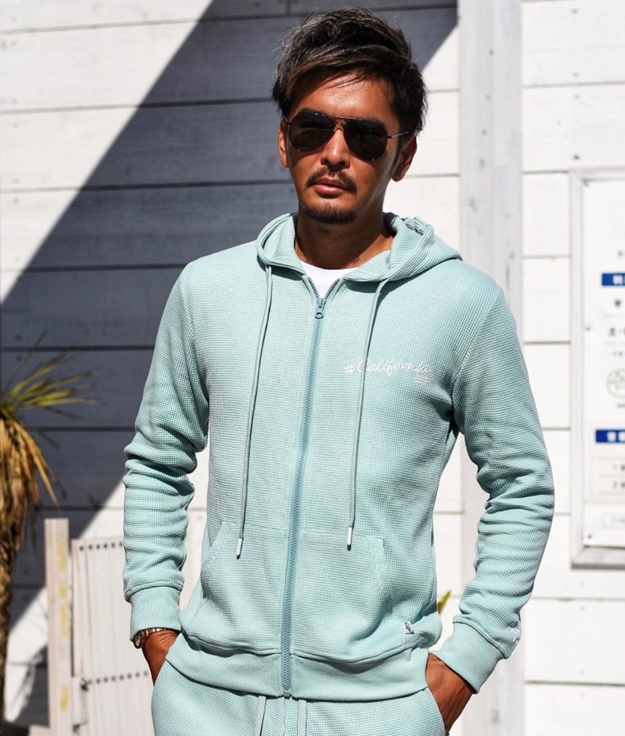 2024 春 新作 ☆ # California 刺繍 ピグメント ワッフル ZIP パーカー メンズ レディース カップル ペア サーフ カリフォルニア リゾート 海 ビーチ ルームウェア スウェット 海外 ファッション