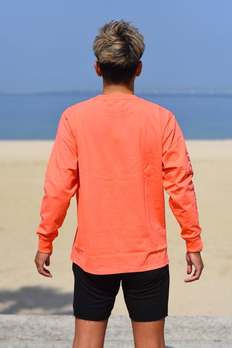 フロントのカリフォルニアのビーチをイメージした大きなプリントが特徴的で目を惹くロンT。