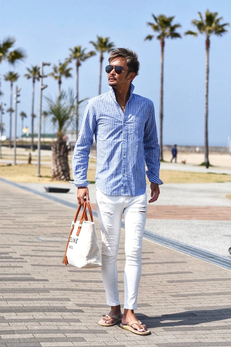 リネン シャツ リゾート メンズ 大人 ストライプ ファッション
