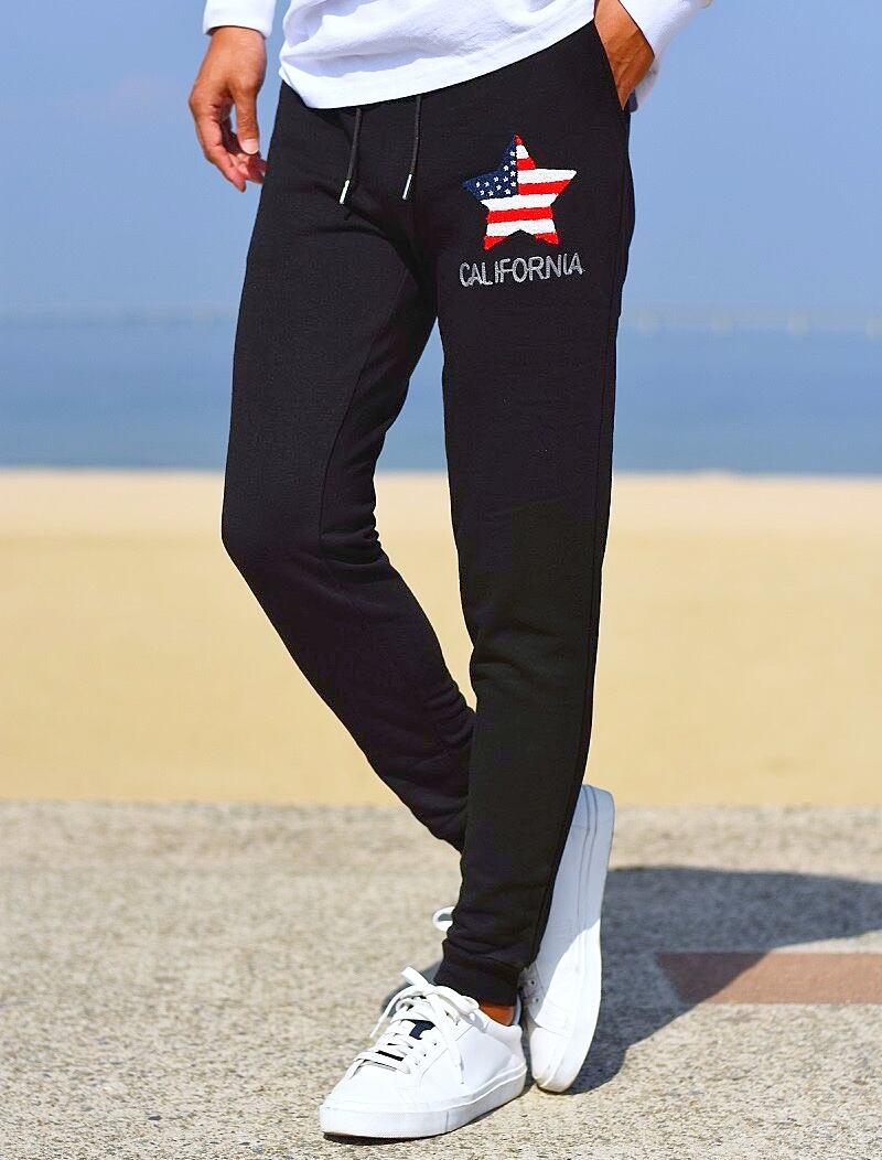 [ 星条旗 スター サガラ 刺繍 CALIFORNIA スウェット ジョガー パンツ ]