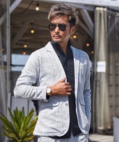 個性的な柄で着こなすテーラードジャケット