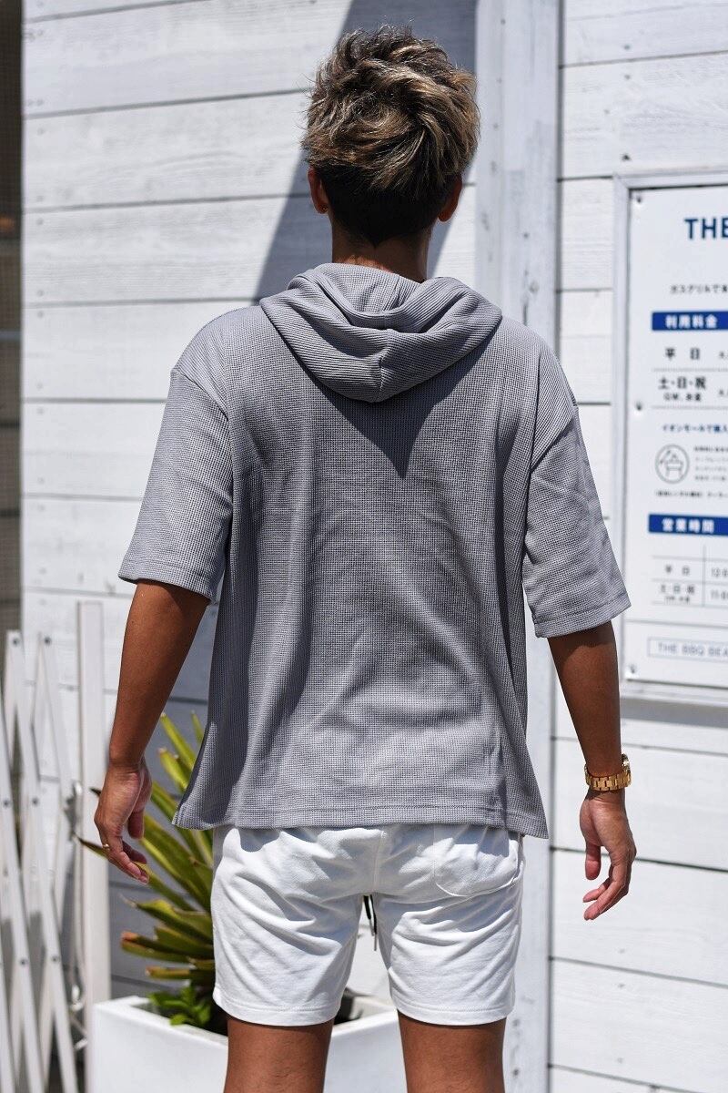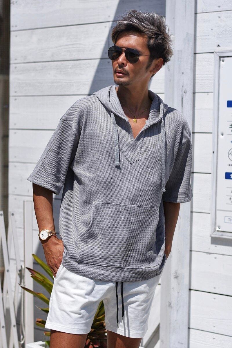 夏 新作 人気 ☆ ワッフル メキシカン パーカー Tシャツ メンズ 無地 ゆったり 涼しい 薄手 サーフ SURF インナー 大人 カジュアル 海 ビーチ 海外 リゾート ファッション