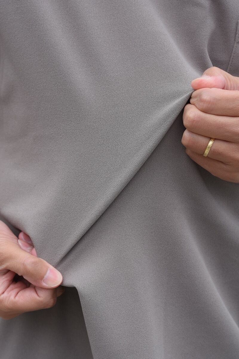 肌離れの良いサラッとした梨地の生地は、ポリウレタンを混紡して高いストレッチ性を持たせました。
