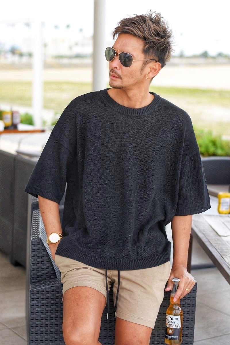 麻 リネン サマーニット Tシャツ 半袖 メンズ 夏 ファッション