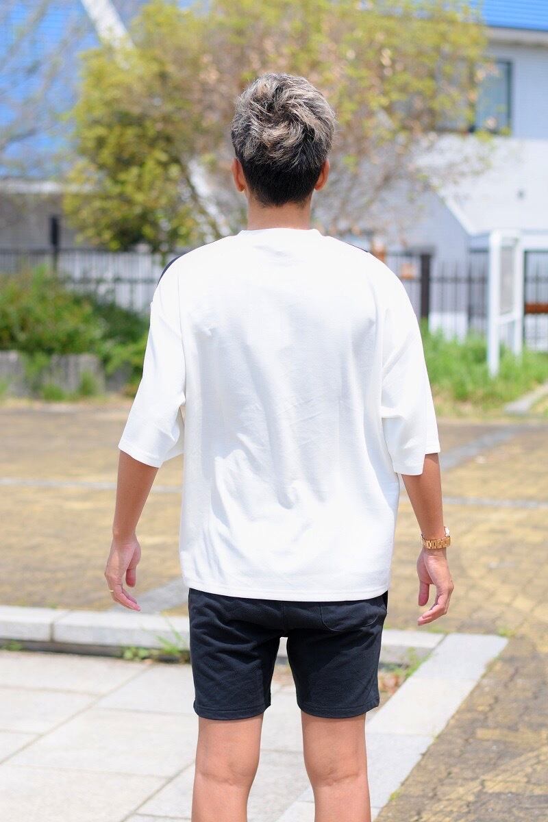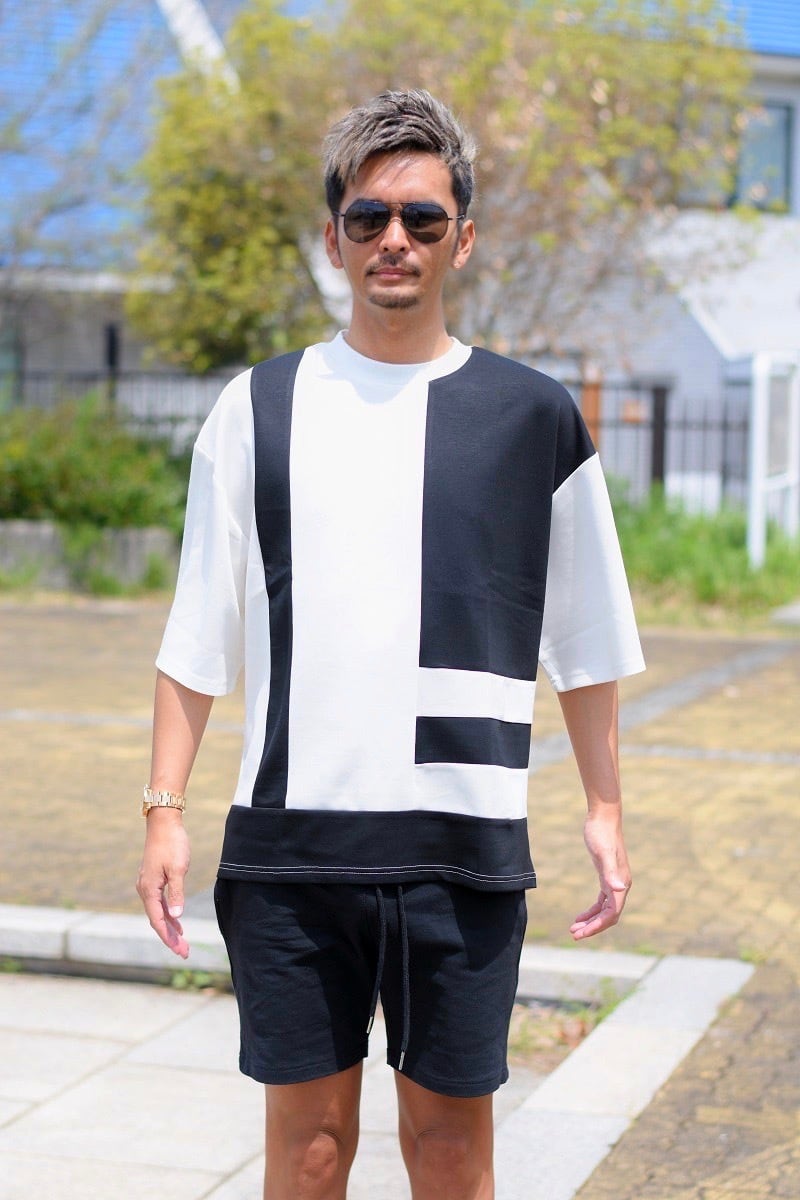 涼しいレーヨン素材を配色に切り替え、一枚でも存在感のあるデザインに仕上げた半袖ビッグTシャツ。