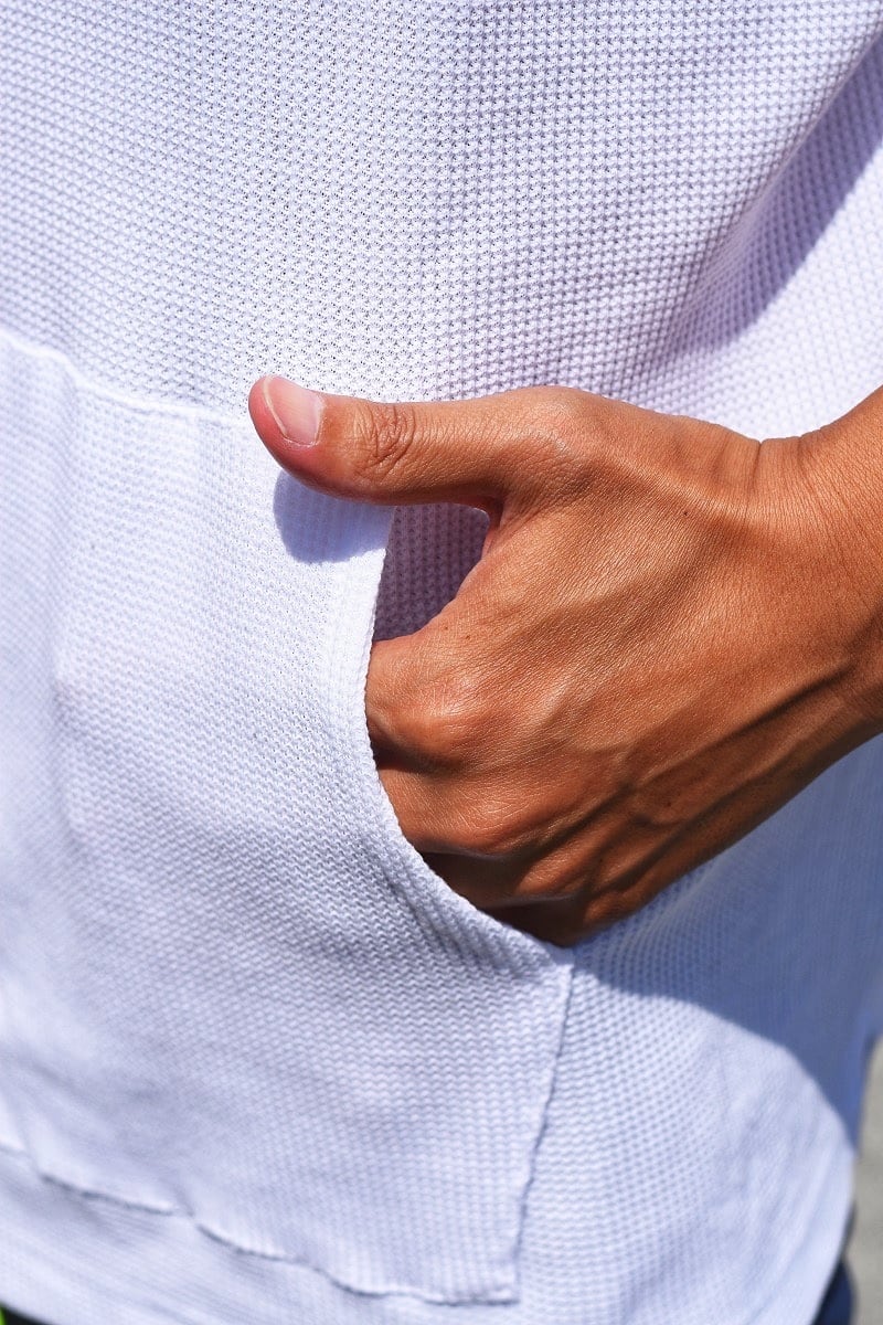 通気性のいいワッフル素材のゆったりメキシカンパーカー。