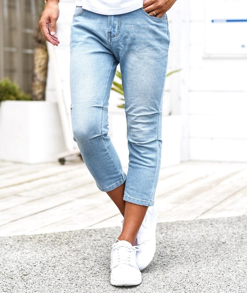 夏 ☆ ブリーチ スキニー デニム クロップドパンツ メンズ サーフ SURF アンクル ユーズド スリム ストレッチ 海 ビーチ コーデ 海外 ファッション