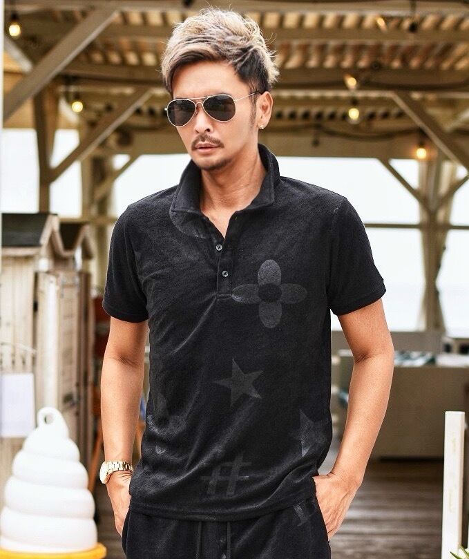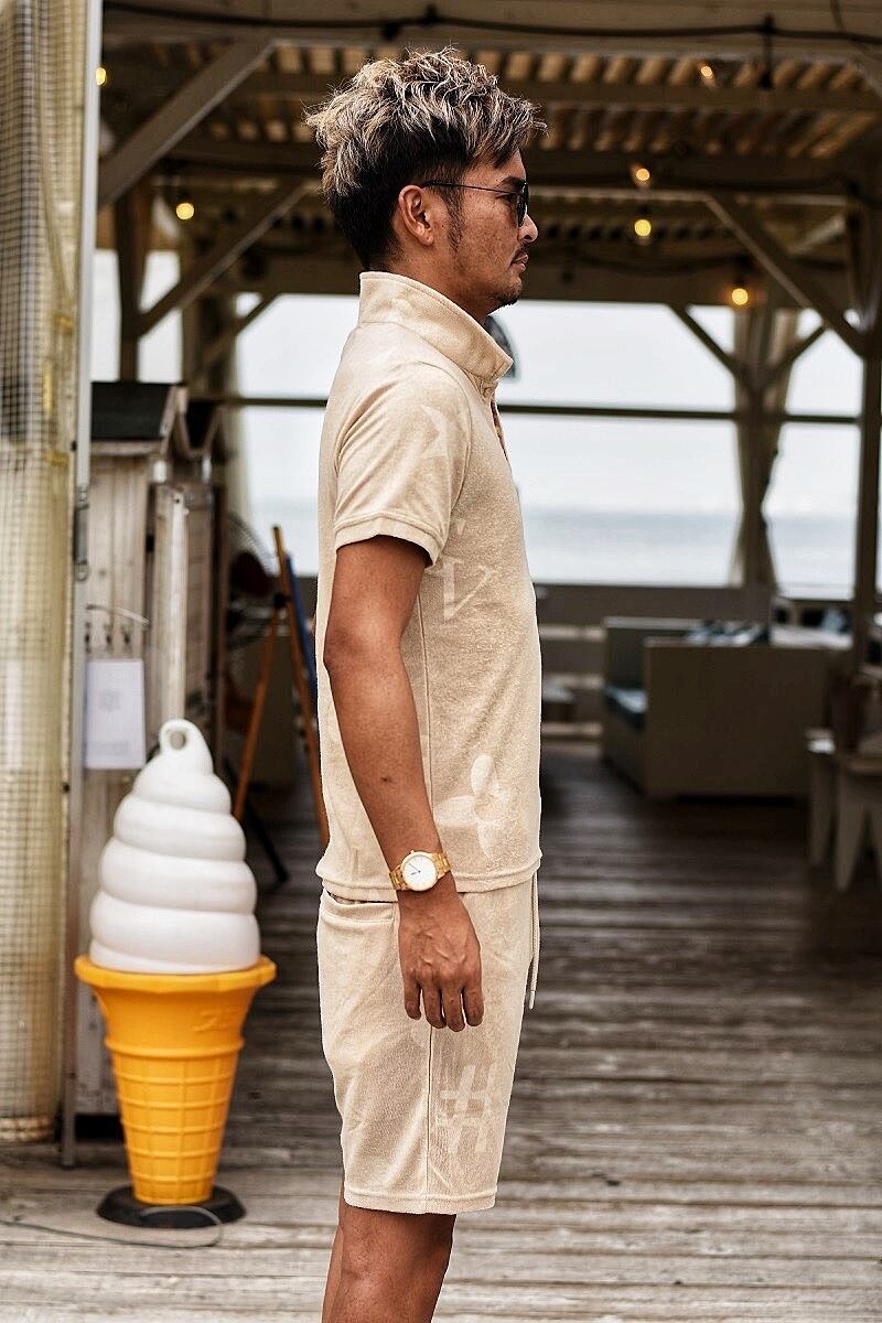 夏 新作 高品質 ☆ モノグラム 型押し パイル ポロシャツ メンズ 半袖 タオル地 Tシャツ 上品 海 リゾート サーフ キレイめ 大人 海外 ファッション