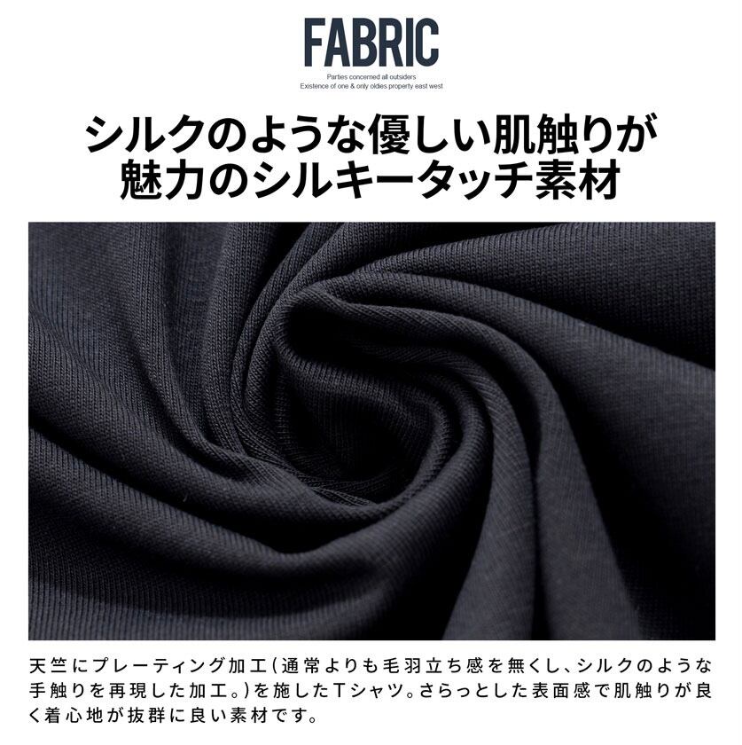 天竺にプレーティング加工(通常よりも毛羽立ち感を無くし、シルクのような手触りを再現した加工。)を施したTシャツ。