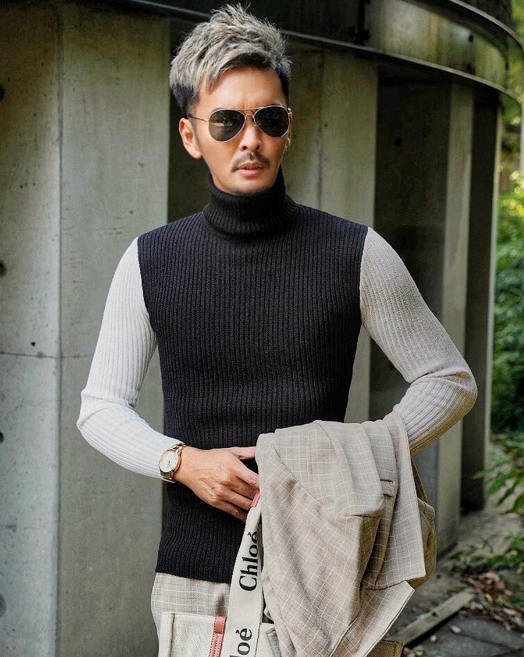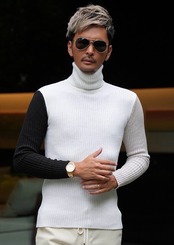 2025 冬 新作 高品質 ☆ エレガント リブ カラー スイッチ タートルネック ニット メンズ タートルニット セーター 上品 無地 大人 シンプル ストレッチ キレイめ ファッション