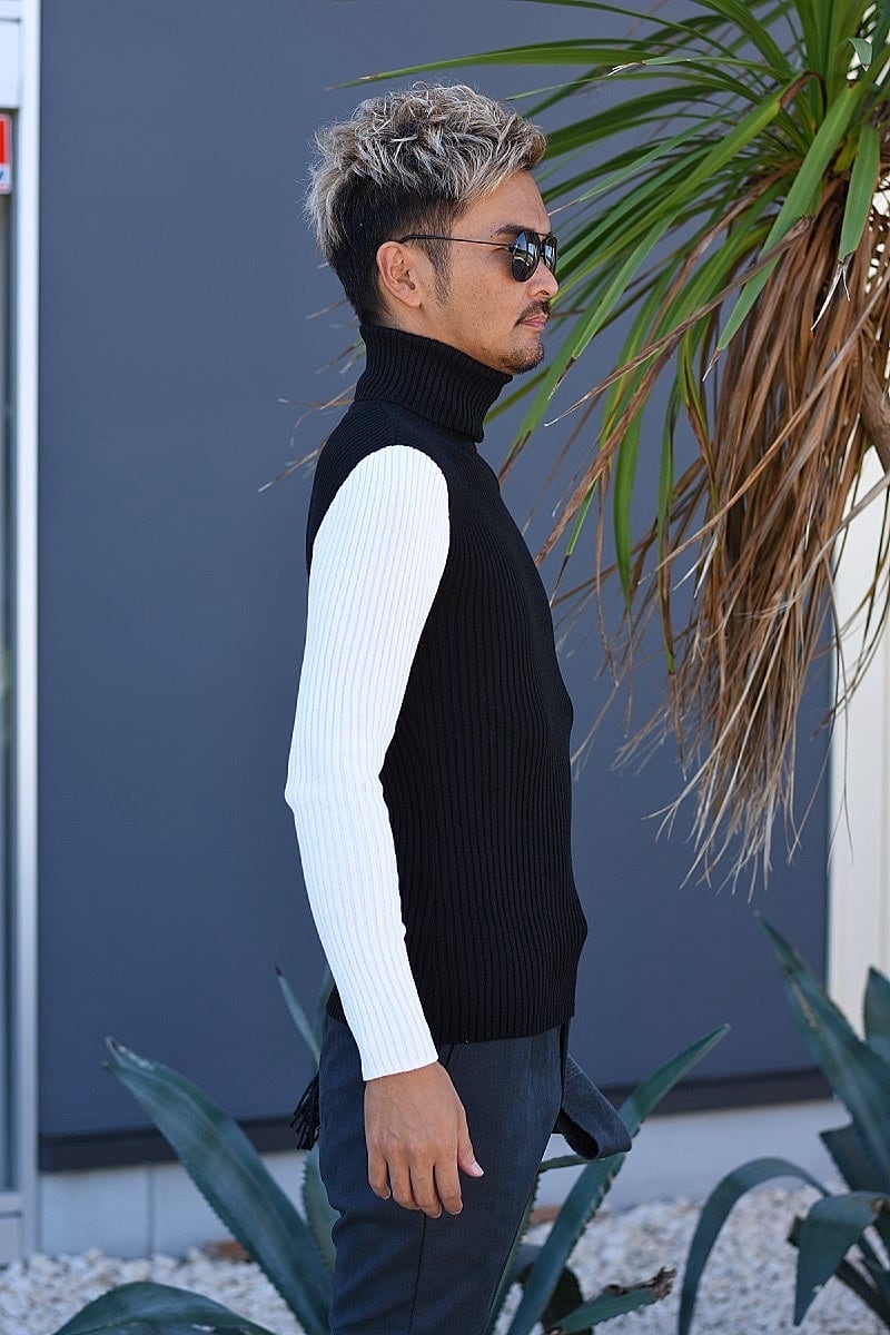 [ エレガント リブ カラー スイッチ タートルネック ニット ]