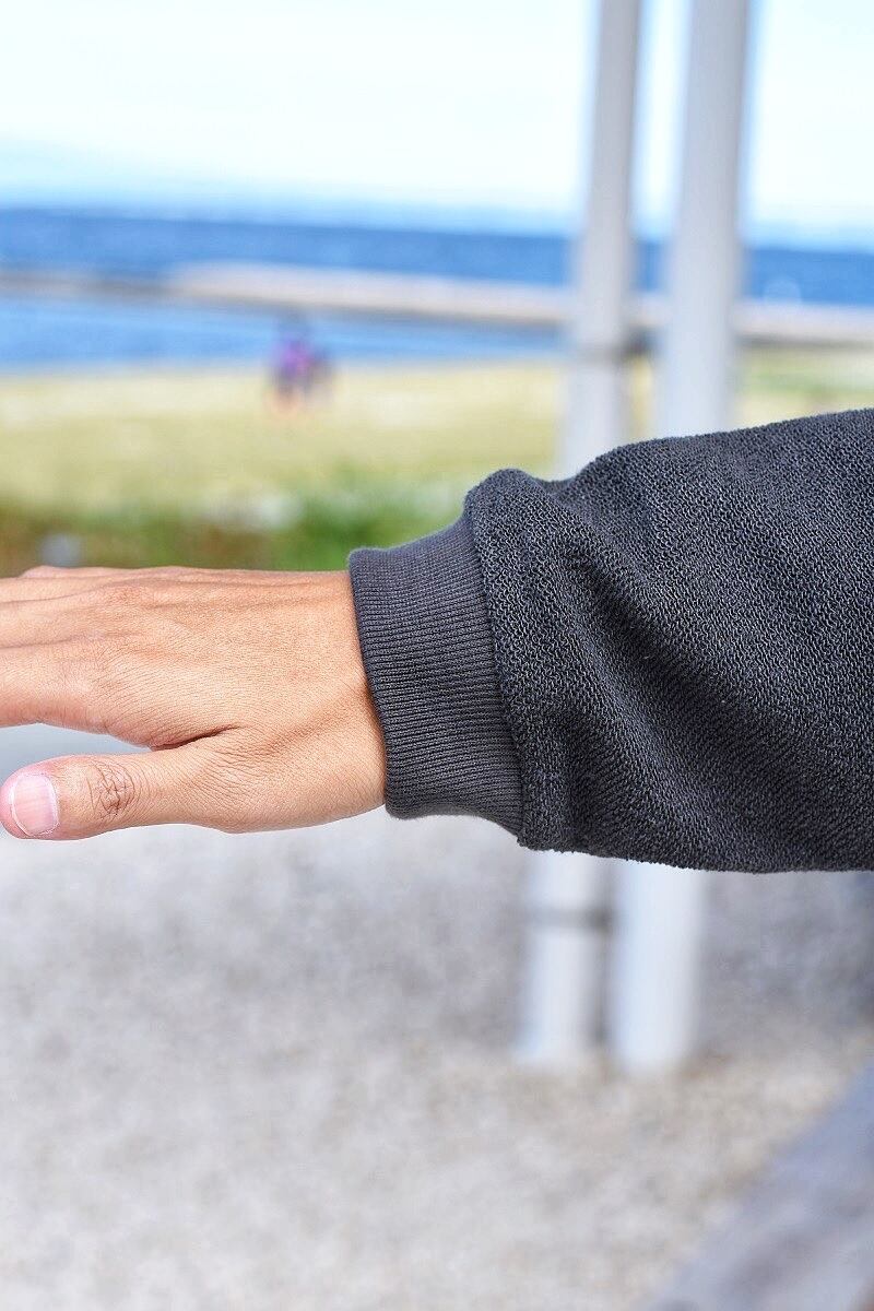 裏毛仕様で素肌に着用しても心地よく、重ね着してもごわつきが少ないのが特徴。