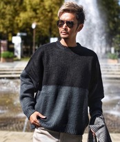 冬 ☆ モヘア ツートーン リラクシング ニット メンズ レディース セーター ビッグ ゆったり オーバーサイズ バイカラー スウェット 上品 無地 大人 暖かい カジュアル 海外 ファッション