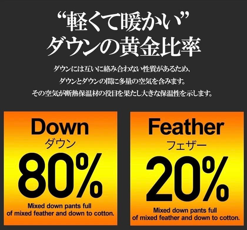 抜群の暖かさと軽さが特徴のダウン素材を中綿に80%使用。