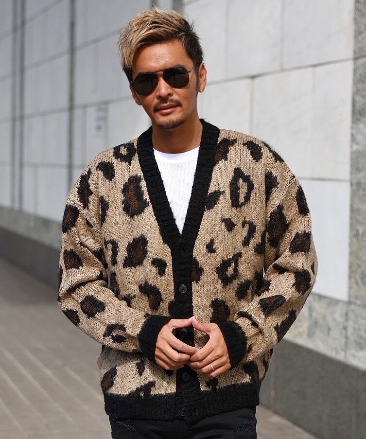 豹柄 ヒョウ ビッグ カーディガン スウェット メンズ 冬 ファッション