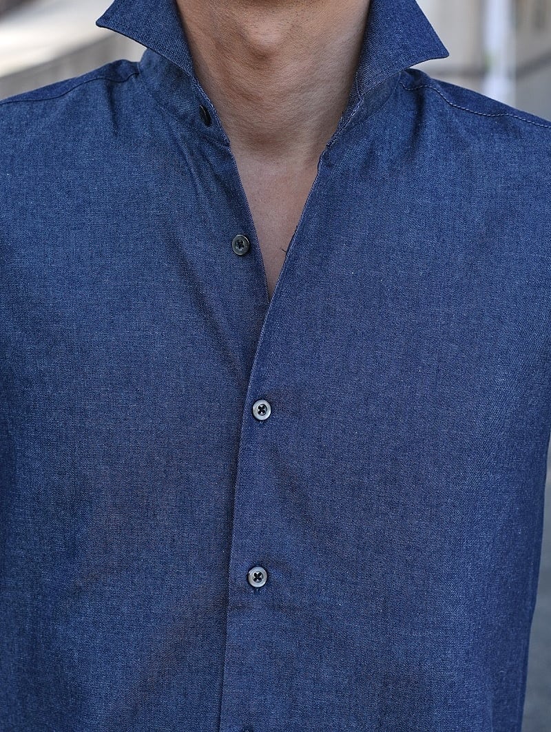 [ デニム ハイクオリティー ホリゾンタル カラー シャツ ]