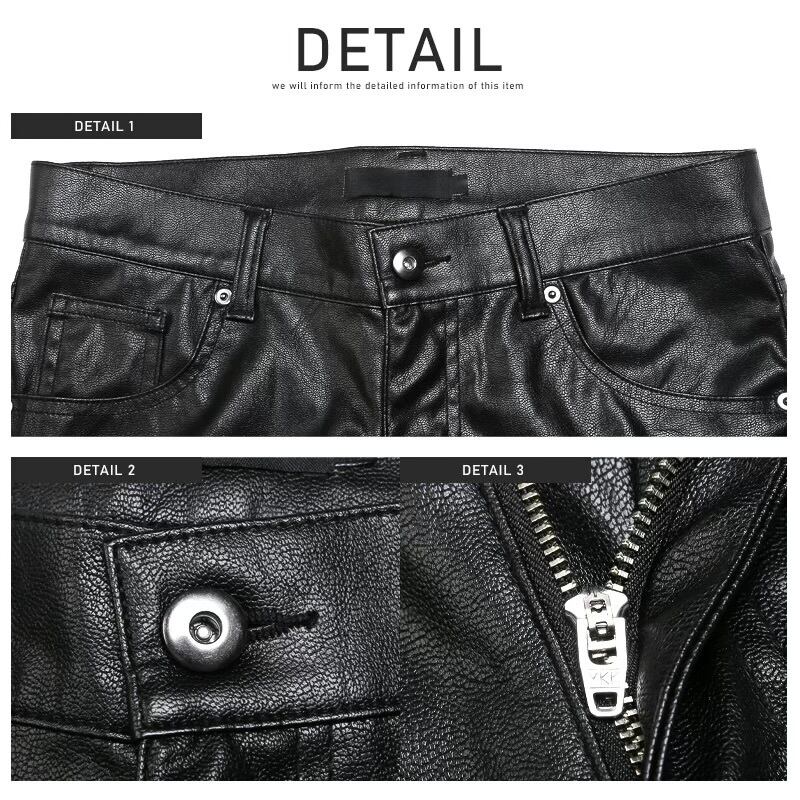 ☆ PU レザースキニー パンツ メンズ 細身 スリム ストレッチ 無地合 成皮革 フェイクレザー 大人 キレイめ カジュアル 海外 ファッション