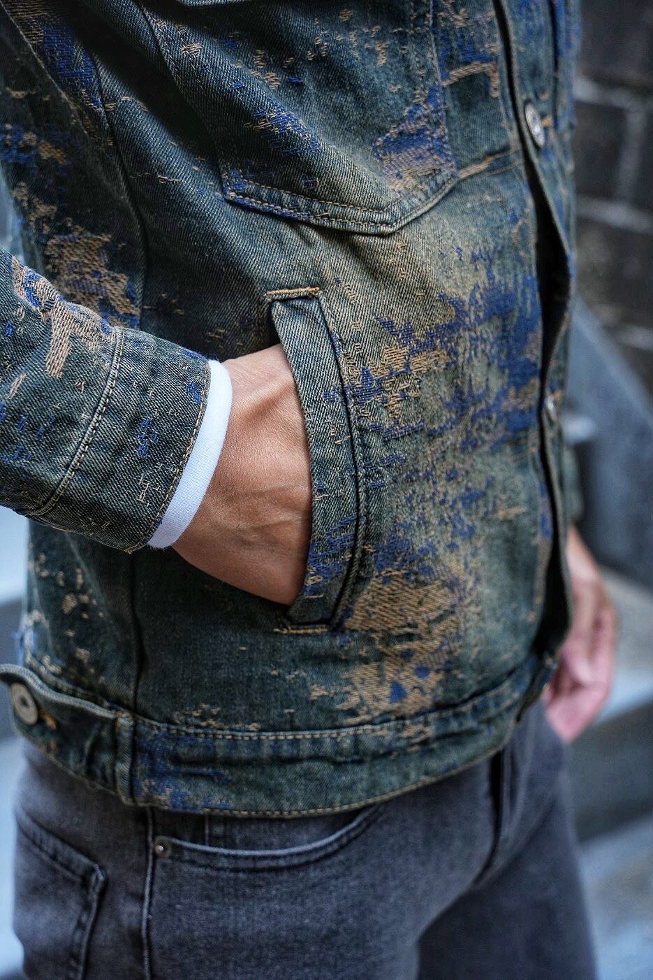 ジャガードとオーバーダイ加工が大人顔のデニムジャケット。