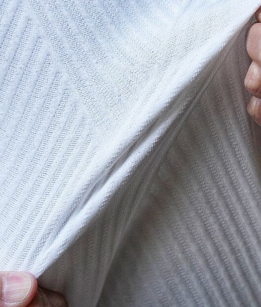 凸凹感のある、立体的なシェブロン柄の生地を使用。