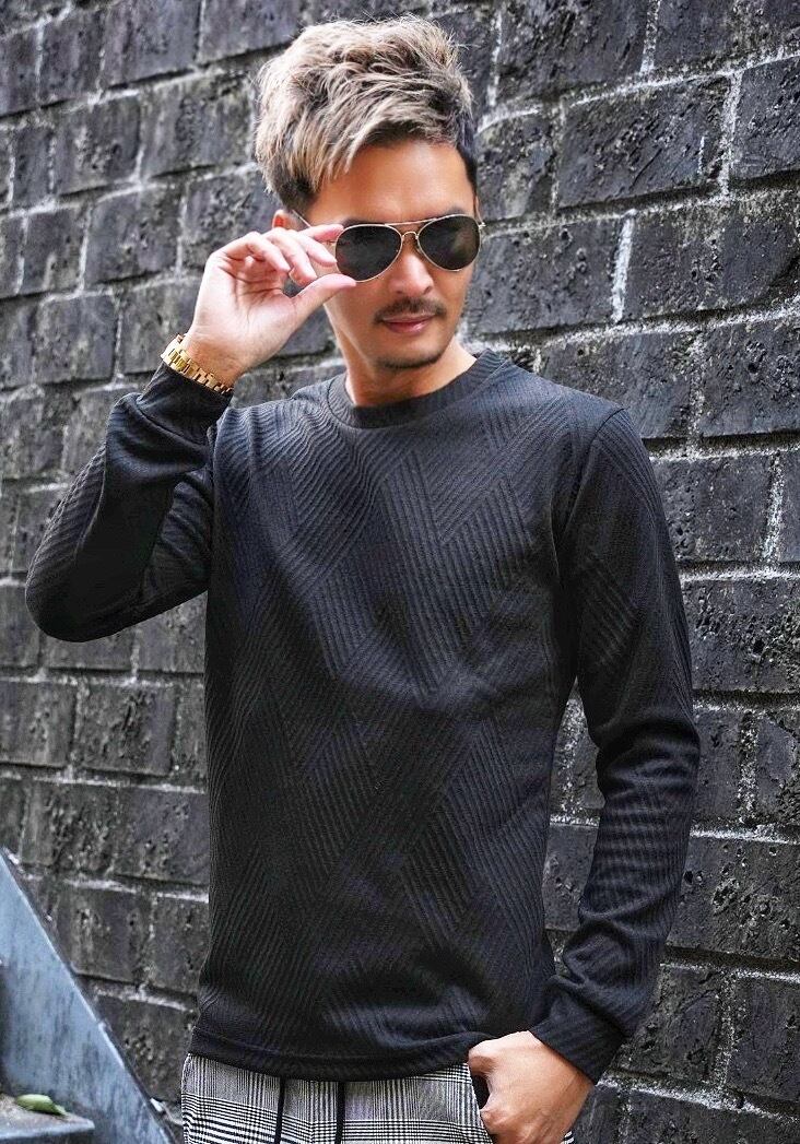 2024 新作 高品質 ☆ シェブロン ジャガード ロンT メンズ 長袖 Tシャツ上品 無地 シンプル 上質 大人 カジュアル ファッション