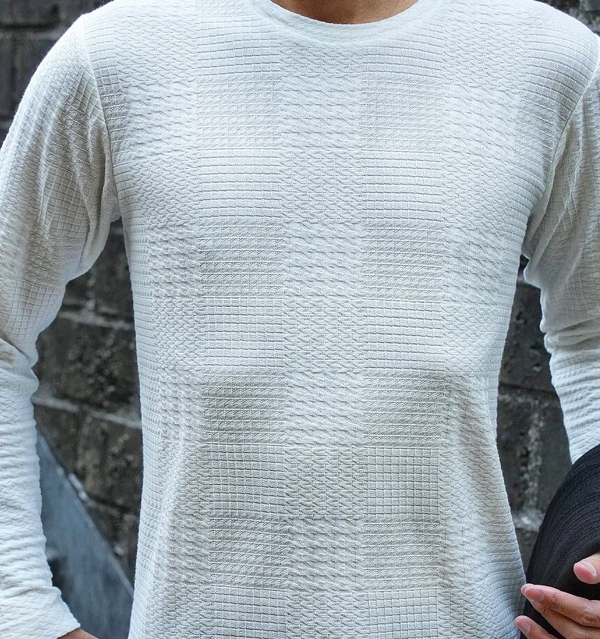2024 新作 高品質 ☆ グレンチェック ジャガード ロンT メンズ 長袖 Tシャツ 細身上品 無地 シンプル 上質 大人 カジュアル ファッション