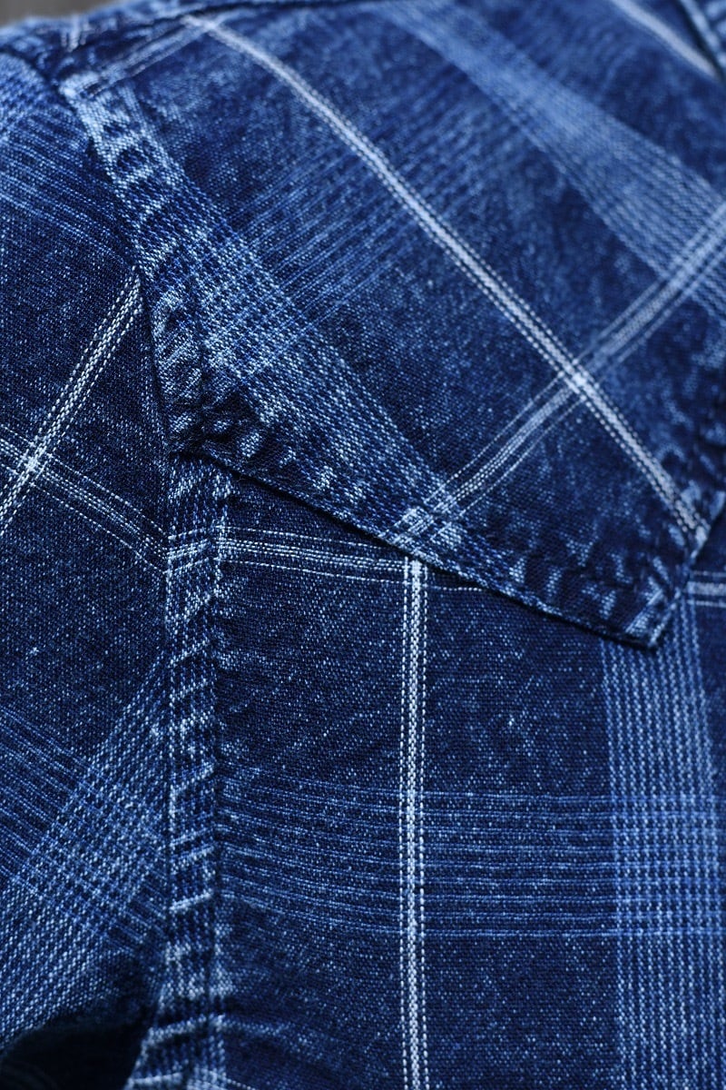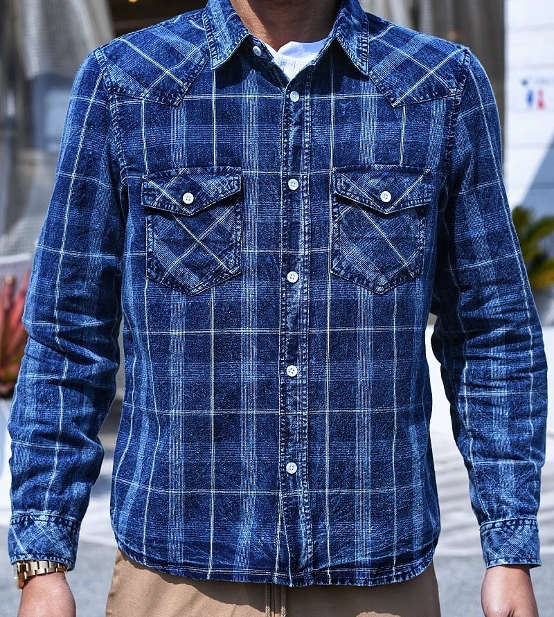 デニムのような風合いのインディゴ染めを施したチェックシャツ。