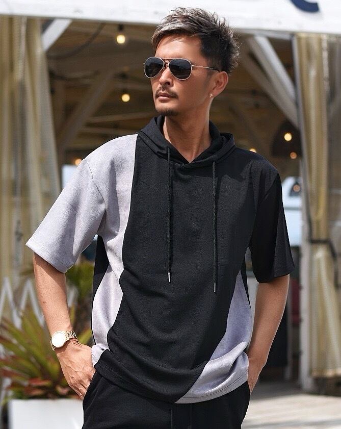 夏 高品質 ☆ スウェード スイッチング ビッグ パーカー メンズ レディース スウェット スエード 半袖 Tシャツ 上品 無地 シンプル 上質 大人 カジュアル ファッション ホワイト